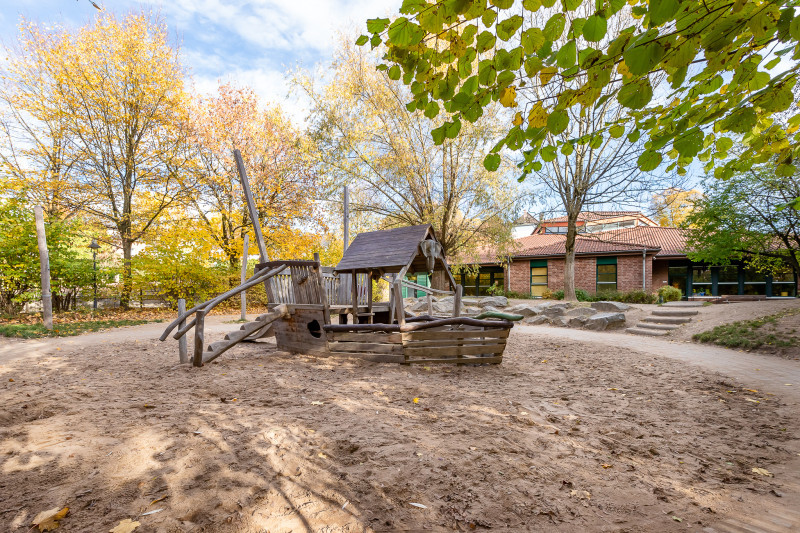 Verschiedene Funktionsräume, eine eigene Bewegungshalle und unser großes Außengelände bieten vielfältige Anreize für Spiel, Lernen und Bewegung. Die Sprachentwicklung begleiten wir alltagsintegriert und fördern sie gezielt. Eine gesunde Ernährung ist uns ebenso wichtig - Frühstück und Mittagessen werden täglich frisch von unserer Köchin zubereitet.