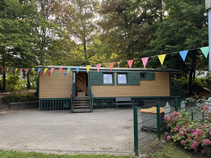 In unserem Natur und Erlebniswagen (Bauwagen) werden täglich bis zu 15 Kinder im rollierenden System betreut.